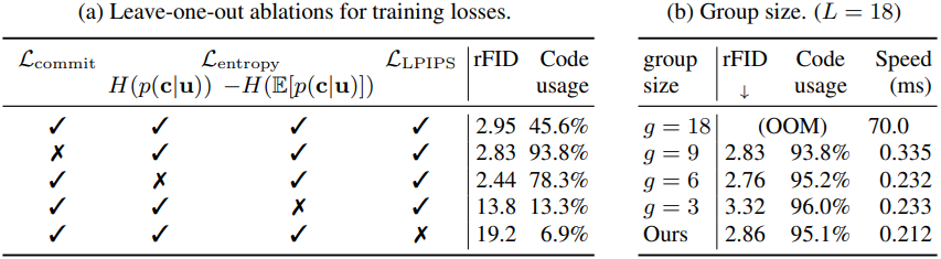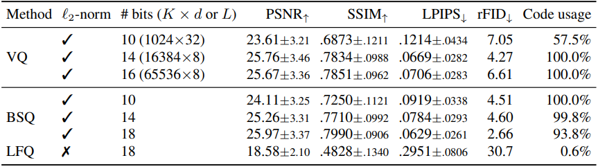 - Codebook 크기가 증가할수록 재구성 결과가 일관되게 향상된다.