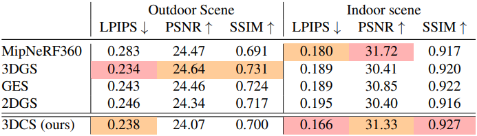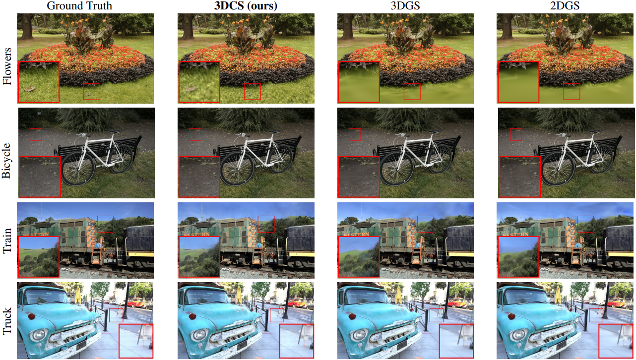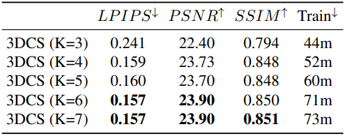 다음은 densification threshold를 높여서 학습한 가벼운 3DCS 모델과 3DGS를 비교한 결과이다.