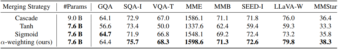 다음은 토큰 병합 전략에 대한 ablation 결과이다.