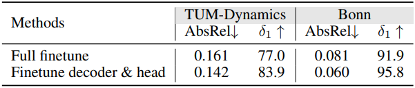 - 인코더는 고정, 디코더와 DPT head만 fine-tuning