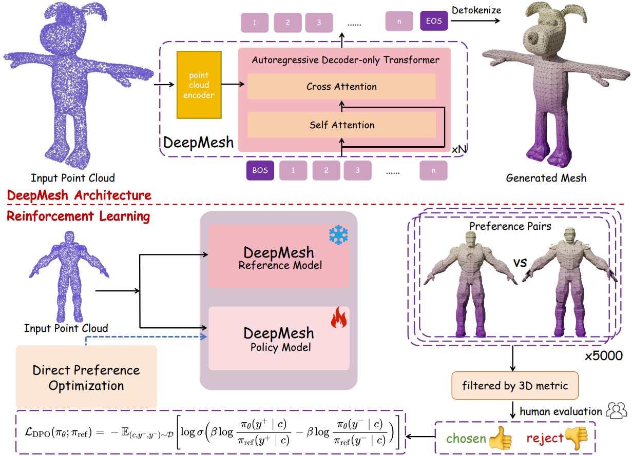[논문리뷰] DeepMesh: Auto-Regressive Artist-mesh Creation with Reinforcement Learning