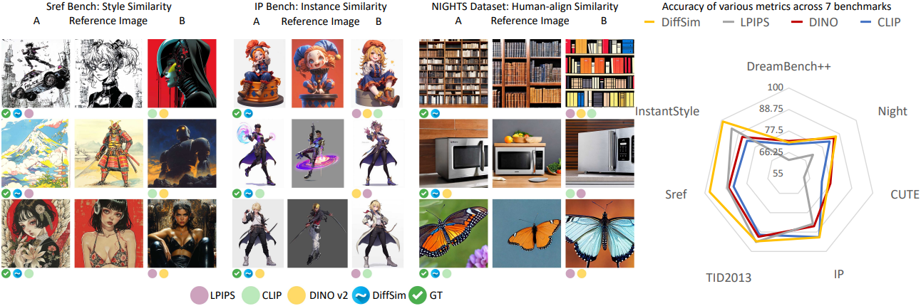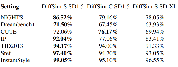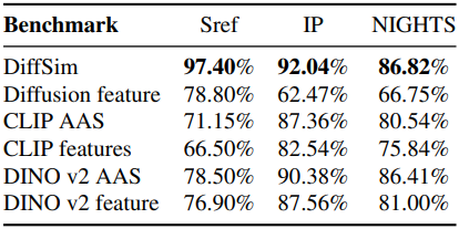 DiffSim 방법은 광범위하게 적용 가능하며, attention layer에서 feature 유사도를 계산하여 이미지 feature를 분석할 수 있게 해준다. 본 논문에서는 DiffSim 접근 방식을 CLIP 이미지 인코더와 DINO v2 아키텍처로 확장했다.