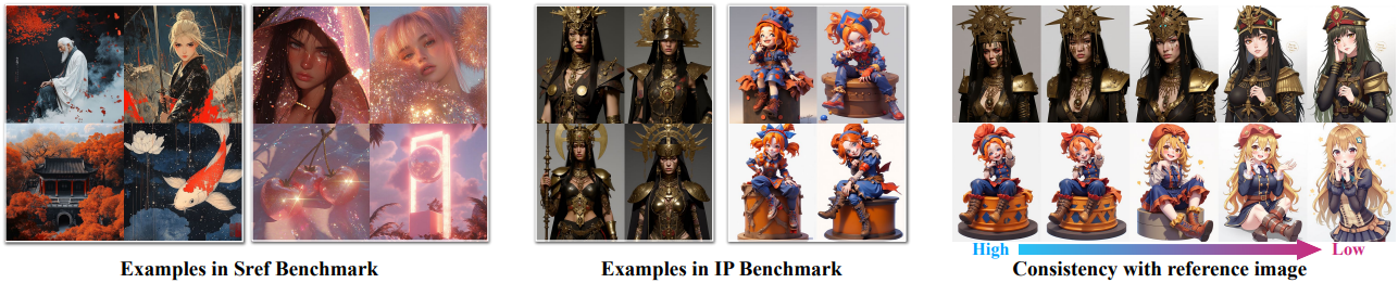 인스턴스 수준의 일관성은 커스터마이징된 생성에서 가장 중요한 것 중 하나지만, 그러나 캐릭터 일관성을 평가하기 위한 고품질 벤치마크가 부족하다. 본 연구에서는 299개의 IP 캐릭터 이미지를 수집하고, Flux 모델과 IP-Adapter를 사용하여 각 캐릭터에 대해 서로 다른 일관성 가중치를 적용한 여러 변형을 생성했다.