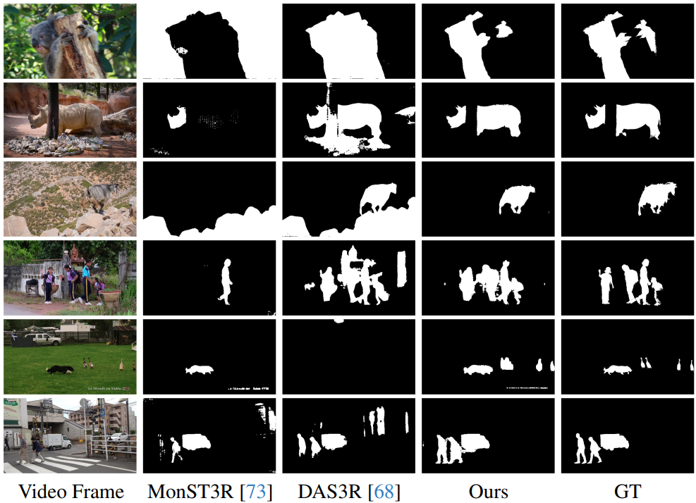 \[\begin{equation} \textbf{M}^t = \unicode{x1D7D9} [\textbf{A}^{t = \textrm{dyn}} > \alpha] \end{equation}\]Segmentation은 프레임별로 처리되며, 저자들은 시간적 일관성을 높이기 위해 모든 프레임의 정보를 융합하는 feature 클러스터링 방법을 적용하였다.