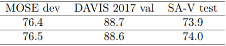 다음은 프롬프트를 사용한 VOS 성능을 비교한 결과이다.