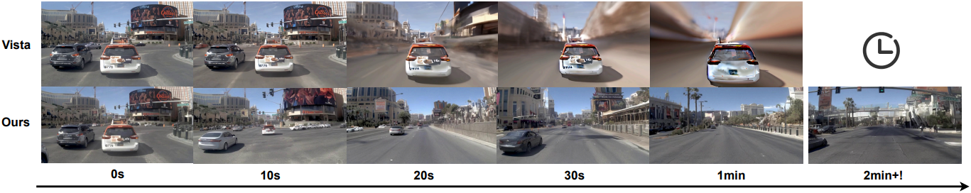Vista와 같은 주행 시뮬레이션 모델은 과거와 고정된 길이의 미래에 대한 글로벌한 시공간적 분포를 동시에 포착하는 video diffusion model 형태로 world model을 구현하였다.