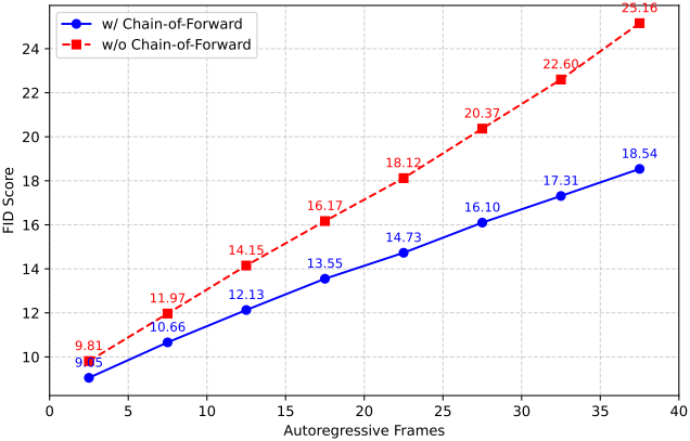 - Chain-of-Forward 학습 전략: Autoregressive 루프에서 오차 누적 및 콘텐츠 드리프트를 해결한다.