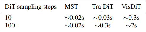 - TrajDiT: 2 layer, 50M