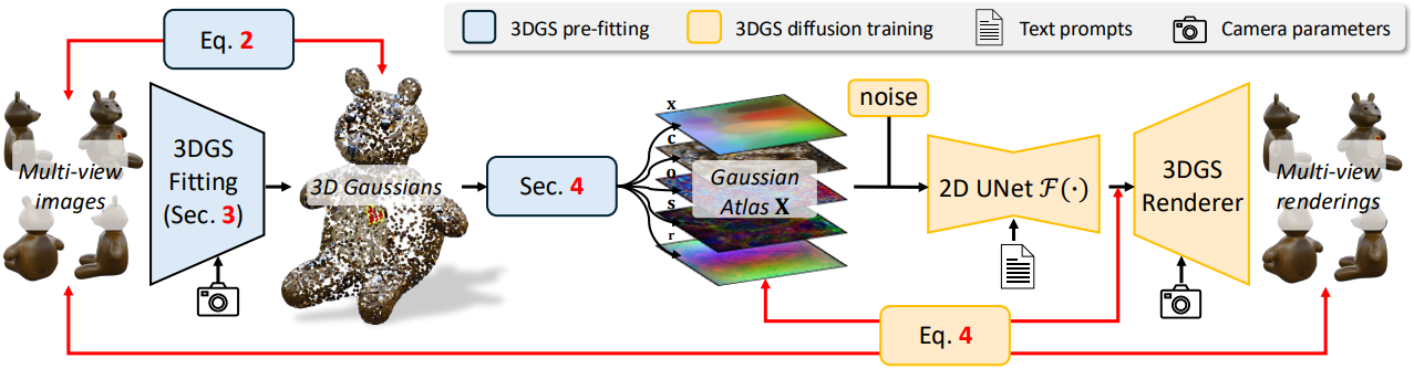 3D Gaussian을 2D 평면으로 변환한 후, 사전 학습된 Latent Diffusion 모델을 Gaussian Atlas를 사용하여 fine-tuning할 수 있다.