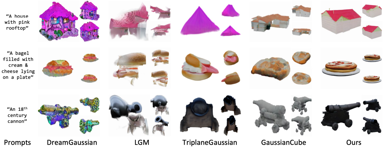 다음은 여러 3D 생성 모델과의 비교 결과이다.