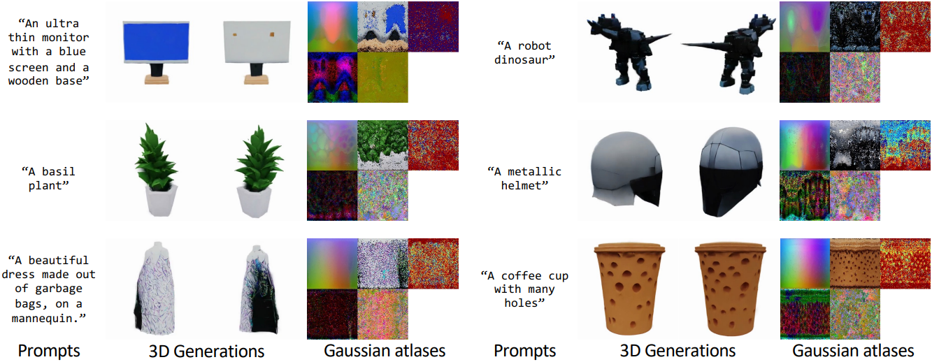다음은 Gaussian Atlas의 생성 예시들이다.