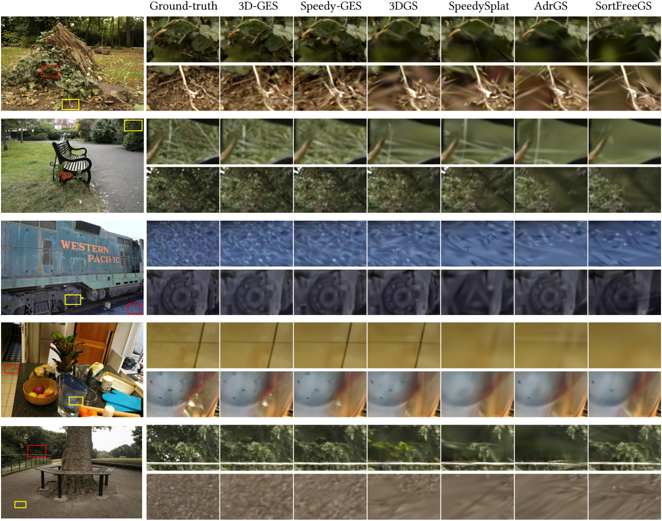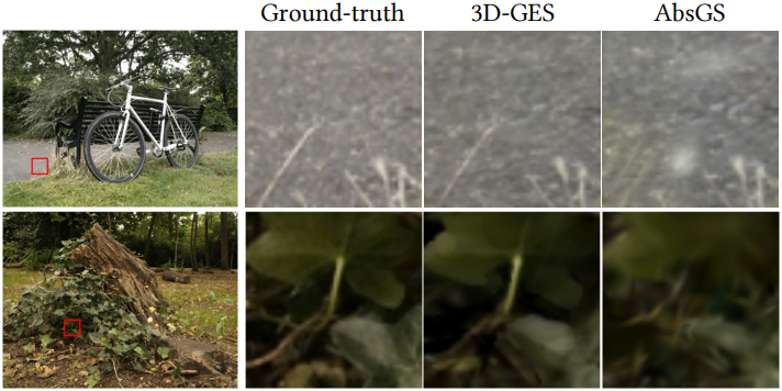 다음은 AbsGS와 3D-GES를 비교한 예시이다.