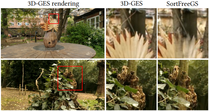 다음은 SortFreeGS와 3D-GES를 비교한 예시이다.