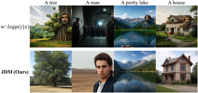 다음은 \(\log p (c \vert \textbf{x})\)를 직접 사용한 모델과 JDM을 비교한 결과이다.