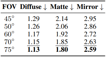 다음은 LoRA scale, 카메라 FOV, 카메라 고도에 대한 ablation study 결과이다.