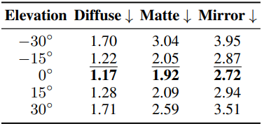 로 구성된다. 랜덤한 카메라 궤적과 environment map 회전을 사용하여 장면당 여러 프레임을 렌더링한다. 이러한 장면은 단순해 보이지만, 그림자, 반사광, 상호 반사 등 다양한 조명 효과를 보여주며, 모두 실제 HDR lighting과 함께 제공된다. 이러한 데이터는 모델이 정확한 음영 단서와 광원 위치를 학습하는 데 매우 중요하다.