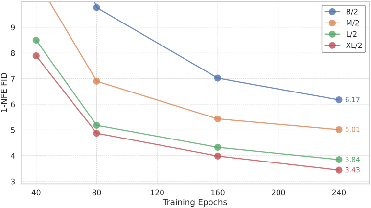 다음은 scalability를 나타낸 그래프이다. (1-NFE ImageNet 256$\times$256)