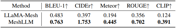 다음은 메쉬 이해 능력을 LLaMA-Mesh와 비교한 결과이다.