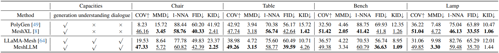 다음은 메쉬 이해 능력을 LLaMA-Mesh와 비교한 결과이다.
