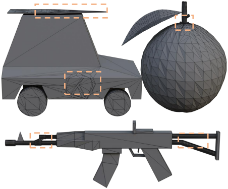 아래 그림에서 볼 수 있듯이, 고품질 구조와 저품질 구조가 하나의 메쉬 내에 공존하는 경우가 많아 supervision의 불일치로 인해 학습 노이즈가 발생한다.