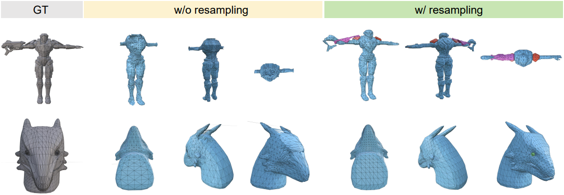 본 논문의 메쉬 표현 방식은 normal 일관성을 강하게 만족한다. 아래 예시와 같이 디코딩된 삼각형들은 모두 같은 방향의 normal을 가진다.