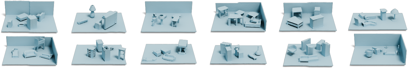 다음은 장면 수준의 생성 결과이다. (Synthetic Room)