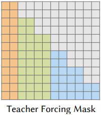 MAR은 시퀀스의 토큰의 순서를 바꾸고 일부를 마스킹한 다음, 모델이 autoregressive 방식으로 예측하는 방식으로 작동한다. 그러나 시퀀스가 여러 octree 깊이의 토큰으로 구성되어 있고, 더 깊은 octree 레이어의 토큰이 더 얕은 레이어의 토큰에 의존하는 경우, MAR을 시퀀스에 직접 적용하면 dependency 문제가 발생할 수 있다. 이러한 문제를 해결하기 위해, 저자들은 깊이별 teacher forcing 마스크를 도입했다. 시퀀스 전체의 순서를 바꾸는 대신, 각 깊이 레벨 내에서 토큰의 순서를 바꿔 더 높은 깊이의 토큰이 더 낮은 깊이의 토큰으로부터 정보를 얻을 수 있도록 하면서 더 높은 깊이의 토큰에서 정보가 유출되는 것을 방지한다. 이를 통해 시퀀스의 계층적 의존성을 유지할 수 있다.