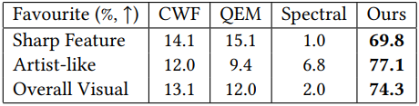 다음은 sharp-feature 보존에 대한 user study 결과이다.