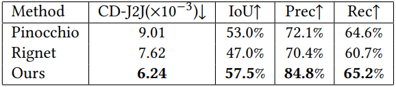다음은 skeletal joint 예측에 대한 비교 결과이다.