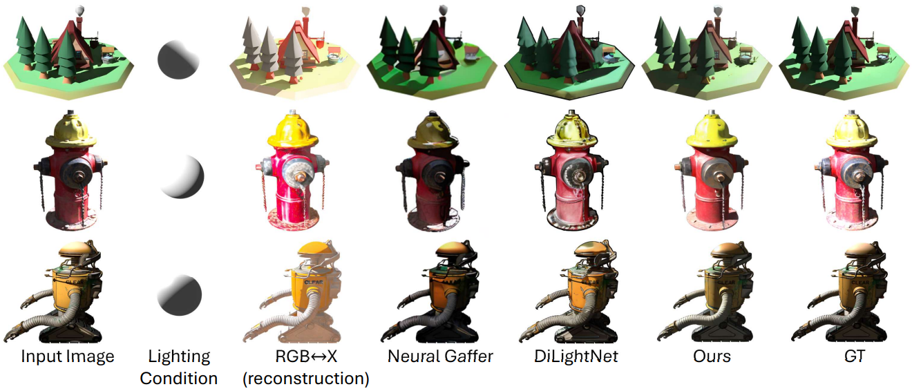 - 물리적 타당성을 확보하는 것이 여전히 어렵다. 순수 데이터 기반 접근 방식은 종종 기본적인 light transport 원리를 위반하는 결과를 생성하기 때문이다.