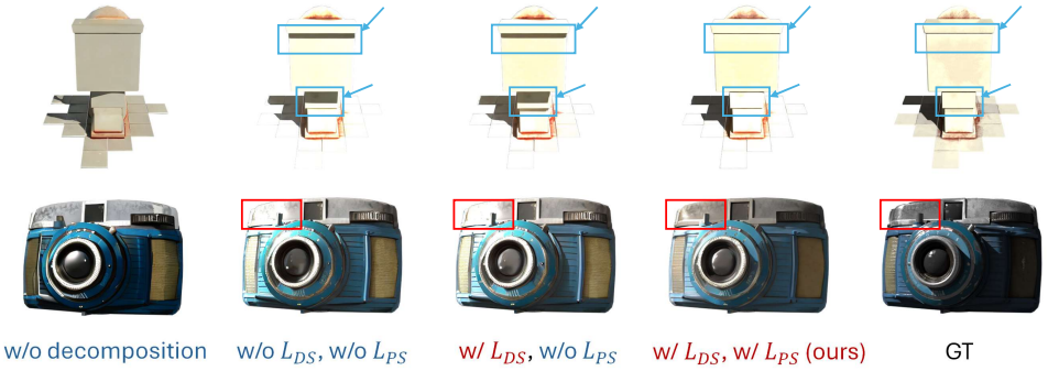 - 제한적인 데이터 기반 prior는 일반화 가능성을 저해하여, 더 많은 미지의 material, 조명 조건 또는 현실적인 장면 구성을 접할 때 robustness가 떨어진다.