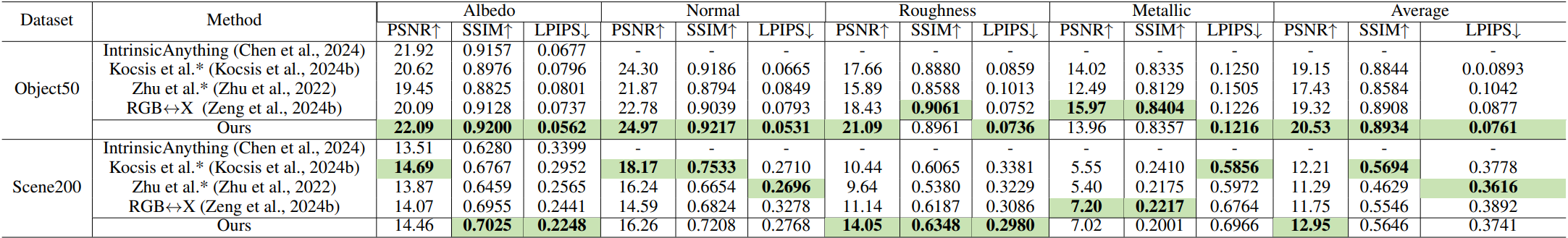 - Inverse neural rendering과 forward neural rendering 단계 모두에서 표준 self-attention layer가 global-aware하도록 확장하여 batch 간 통신을 가능하게 한다. 이러한 설계는 효율성과 예측된 intrinsic들 간의 일관성을 모두 향상시킨다.