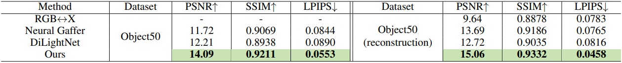 \[\begin{equation} L_\textrm{rec} = \| \phi (I_\textrm{relit}) - \phi (I_\textrm{input}) \|_2^2 \end{equation}\]Final loss