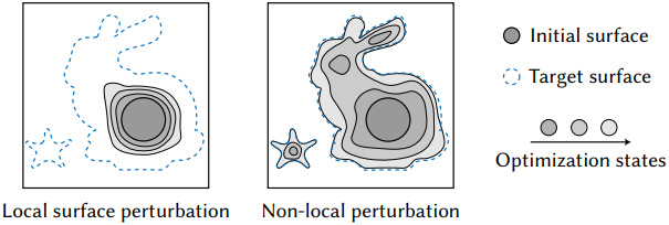 이러한 한계를 극복하기 위해, 기존 표면보다 어느 정도 떨어진 곳에 작은 표면 패치를 도입하는 효과를 고려해 보자. 이러한 수정은 렌더링된 이미지에도 영향을 미치며, 더 일반적인 non-local perturbation으로 해석될 수 있다.
