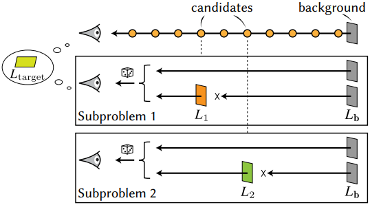 이 경우, 최적의 재구성은 간단하다. 타겟 색상 \(L_\textrm{target}\)과 관련하여 일치도가 향상되면 후보를 생성해야 하고, 그렇지 않으면 후보를 삭제해야 한다.