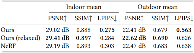 다음은 시각적 품질을 NeRF와 비교한 결과이다.