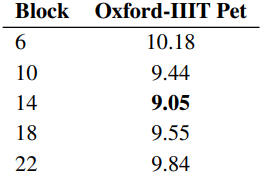 다음은 DiT block에 따른 \(\sigma_\textrm{label}\)을 Oxford-IIIT Pet에서 비교한 결과이다.