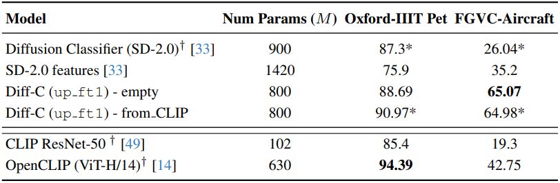 더 나아가, 저자들은 기존 diffusion model의 feature를 기반으로 매우 가벼운 classifier인 Diff-C를 학습시킴으로써 해석을 뒷받침하였다. Diff-C는 추가적인 loss function 사용, student 모델 학습, 또는 feature map 융합 기법의 필요성을 우회하여 상당한 연산 이점을 제공한다.