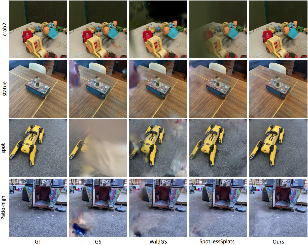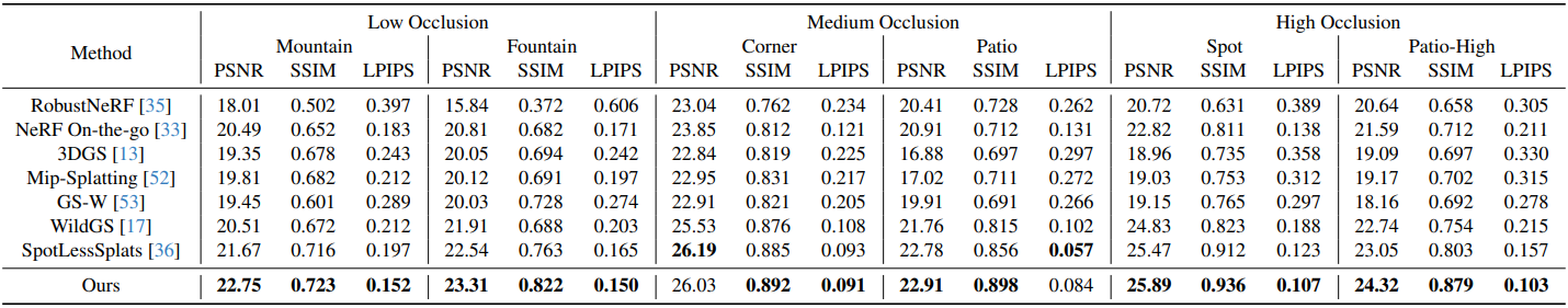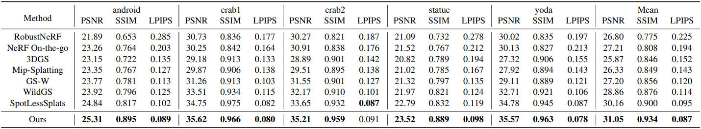 - 데이터셋: NeRF On-the-go, RobustNeRF