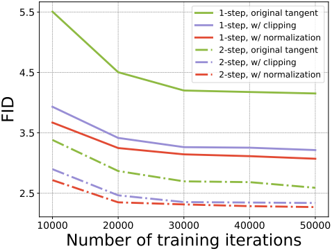 CM 학습의 gradient 분산은 tangent function에서 온다. 저자들은 명시적으로 tangent function을 정규화하였다.