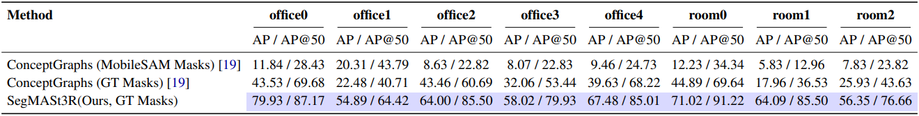 다음은 FastSAM의 마스크를 사용하였을 때의 성능을 비교한 결과이다. (ScanNet++)
