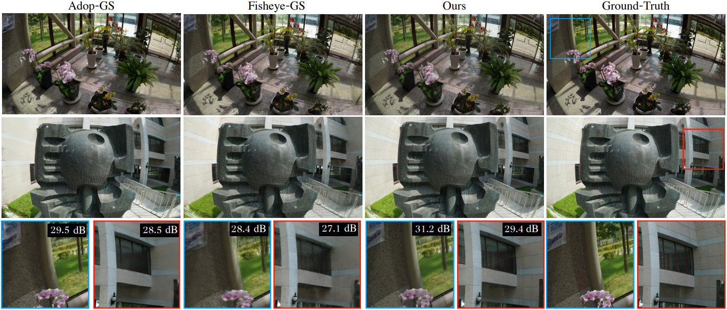 다음은 Fisheye-GS와의 비교 예시들이다.
