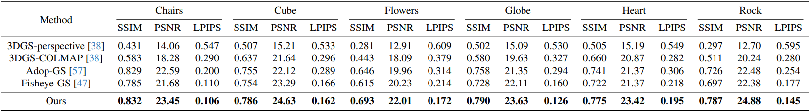 다음은 FisheyeNeRF 데이터셋에 대한 비교 결과이다.