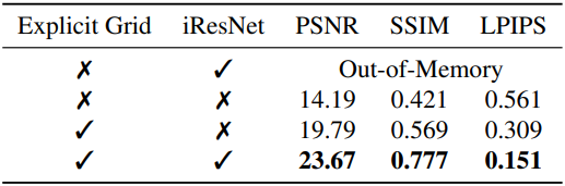 Invertible ResNet은 표현력과 정규화를 모두 제공하지만, 3DGS에 직접 적용하기에는 계산량이 너무 많다. 이미지를 렌더링할 때 알파 블렌딩 가중치로 gradient를 backpropagation하려면 \(\mathcal{D}_\theta\)의 backward pass들을 위한 계산 그래프가 각 Gaussian에 대해 유지되어야 한다. 이는 장면에 있는 3D Gaussian의 수가 수백만 개에 달하는 경우가 많아 메모리가 부족하기 때문에 불가능하다.
