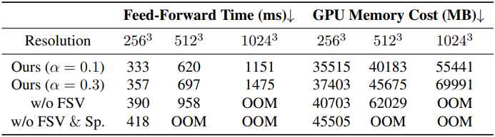 다음은 inference 시간과 GPU 메모리 비용을 비교한 결과이다.