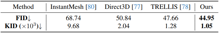 다음은 image-to-3D 생성 품질을 비교한 결과이다.