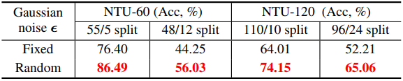 다음은 학습 중에 사용한 Gaussian noise $\epsilon$에 대한 ablation study 결과이다.