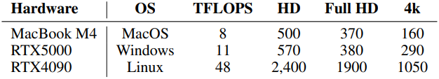 다음은 하드웨어와 해상도에 따른 FPS를 비교한 표이다.
