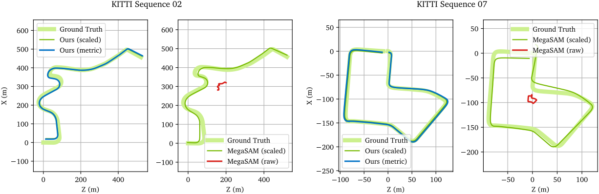다음은 KITTI 데이터셋에서의 포즈 추정 결과를 정성적으로 비교한 것이다.