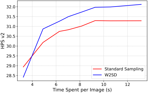 Auto-guidance는 latent를 정제하기 위해 저하된 모델 버전을 사용하는 단순한 interpolation 접근 방식을 활용한다. 이는 W2SD와 유사한 상위 개념을 공유하지만, W2SD는 근본적으로 다른 메커니즘을 도입하여 훨씬 강력한 성능과 더 넓은 적용 범위를 제공한다.